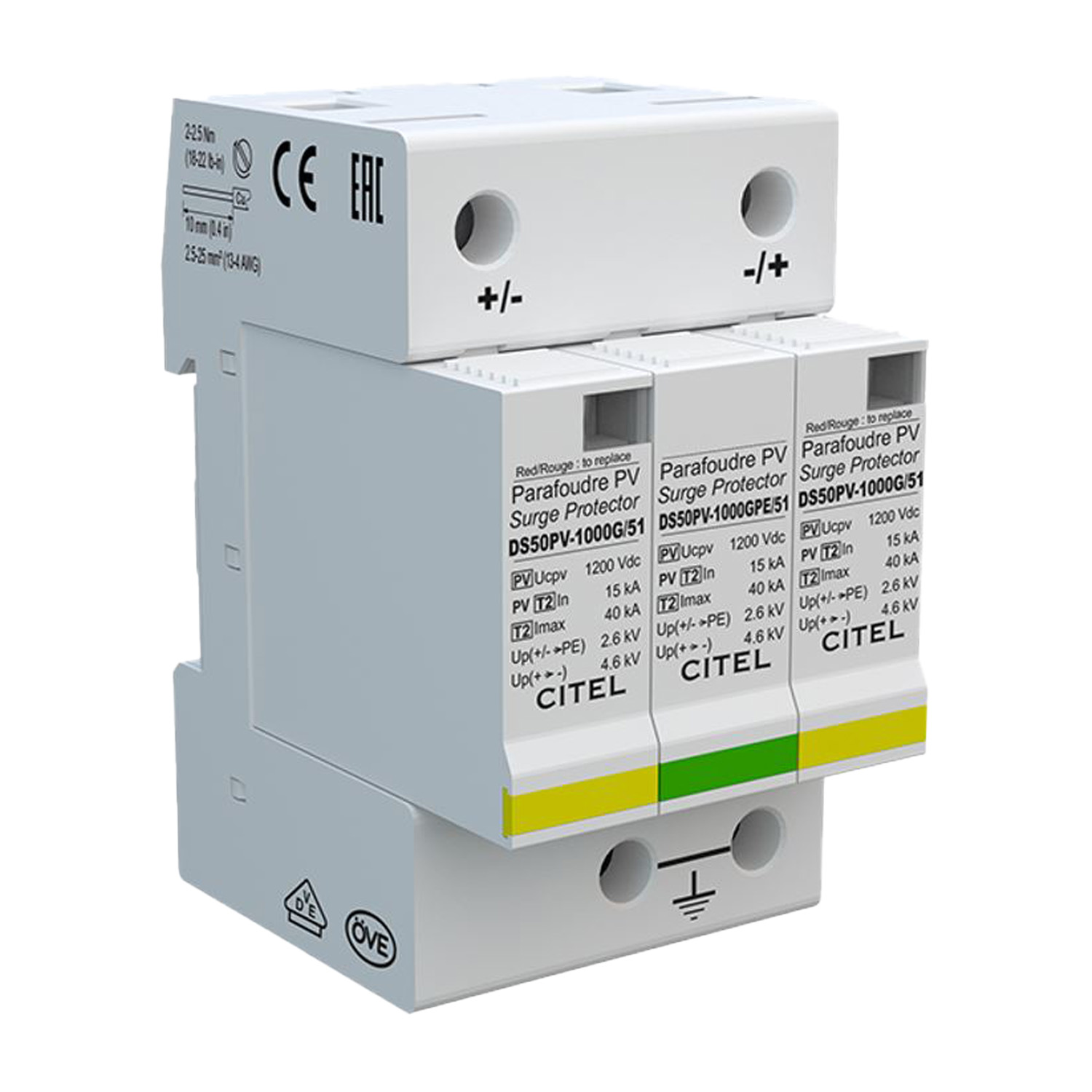 Protector contra sobretensiones (DPS) – CITEL – DC T2 – 480341 DS50PVS-1000/G